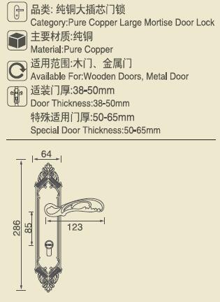 M系列纯铜大门锁