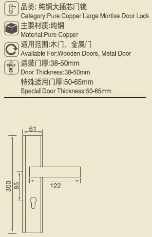 M系列纯铜大门锁