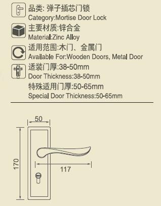 铝塑门插芯锁系列
